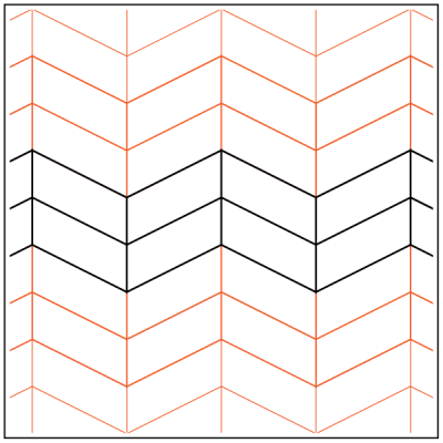 This design contains backtracking and is recommended for experienced quilters only. Testing on practice fabric to find the proper speed and stitch length prior to quilting on projects is suggested. Slower speed and shorter stitch length may be necessary to obtain accuracy. Realignment may also be needed to avoid subsequent rows from touching or overlapping previously stitched rows.