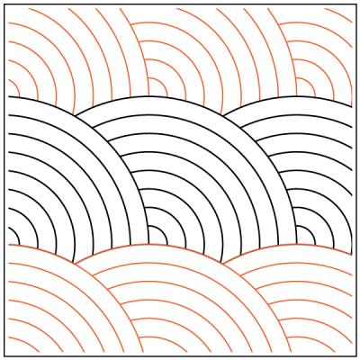 This design contains backtracking and is recommended for experienced quilters only. Testing on practice fabric to find the proper speed and stitch length prior to quilting on projects is suggested. Slower speed and shorter stitch length may be necessary to obtain accuracy. Realignment may also be needed to avoid subsequent rows from touching or overlapping previously stitched rows.
