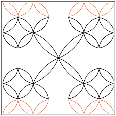 This design contains backtracking and is recommended for experienced quilters only. Testing on practice fabric to find the proper speed and stitch length prior to quilting on projects is suggested. Slower speed and shorter stitch length may be necessary to obtain accuracy. Realignment may also be needed to avoid subsequent rows from touching or overlapping previously stitched rows.