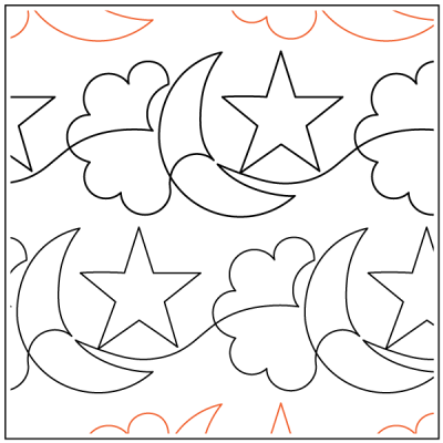 NOTE: This is an OFFSET pattern. For paper pantographs, it will be necessary to be able to quilt 8.25 inches before advancing your quilt. For self print pantographs, it will be necessary to be able to quilt 9 inches before advancing your quilt. For digital files, it will be necessary to MANUALLY offset every other row.